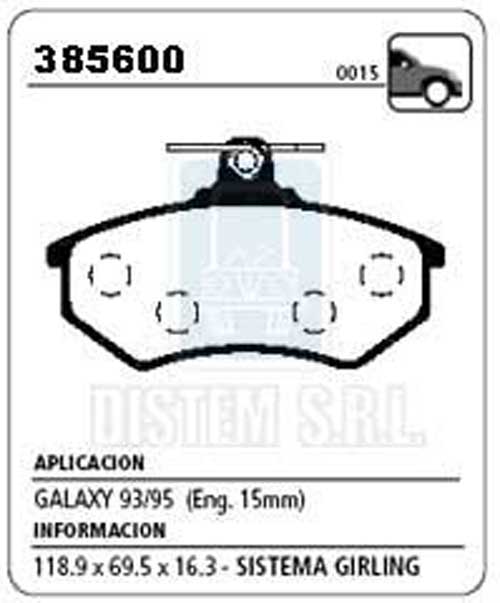 PASTILLA DE FRENO FORD GALAXY-VW.GOLF-PASSAT 15.3MM NA (0015) |
