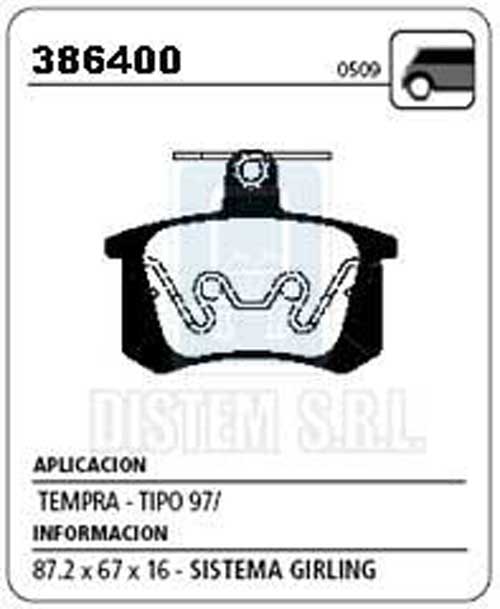 PASTILLA DE FRENO FIAT MAREA-TIPO C/ALAMBRE 97/TRAS. NA (0509) |