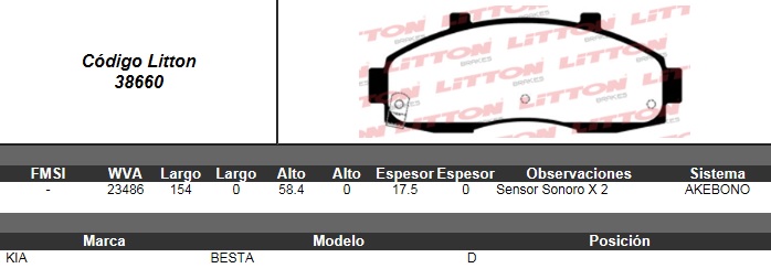 PASTILLA DE FRENO KIA BESTA GS M/N 97/99 DEL. ULT (0527) (PD/64) |