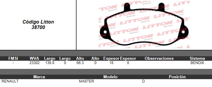 PASTILLA DE FRENO RENAULT MASTER 2.5 97/ NA (0518) |
