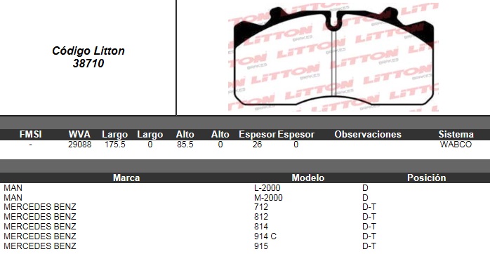 PASTILLA DE FRENO MERCEDES BENZ 712- 812- 814- 914C- 915 S/FLEJE Y S/CABLE DEL./TRAS. ULT. (0519) (PD/124)