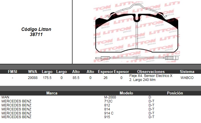 PASTILLA DE FRENO MERCEDES BENZ 712 C- 812- 814- 914 C 98> / LO-914 98> / LO-915 03> SERIE ELECTRONICOS DEL./TRAS. C/SENSOR ULT. (519B) (PD/117)