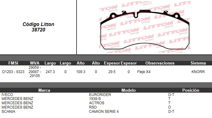 PASTILLA DE FRENO MERCEDES BENZ 1938 S ELECTR 99/-ACTROS /10 T-OMNIBUS 0500 D-SCANIA SERIE 4 99/ D.T- FIAT IVECO EIRORIDER 99/ D.T ULT (0520B)