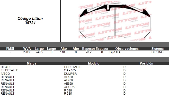 PASTILLA DE FRENO DEUTZ / EL DETALLE 0A-105 97> / IVECO DUMPER / RENAULT AE420- AE 430- AE520- AGORA- R 380.17- R380.19- 385 TL 93>95 / MAGNUM- PREMIUM 00> DEL./TRAS. ULT. (0522B) (PD/125) |