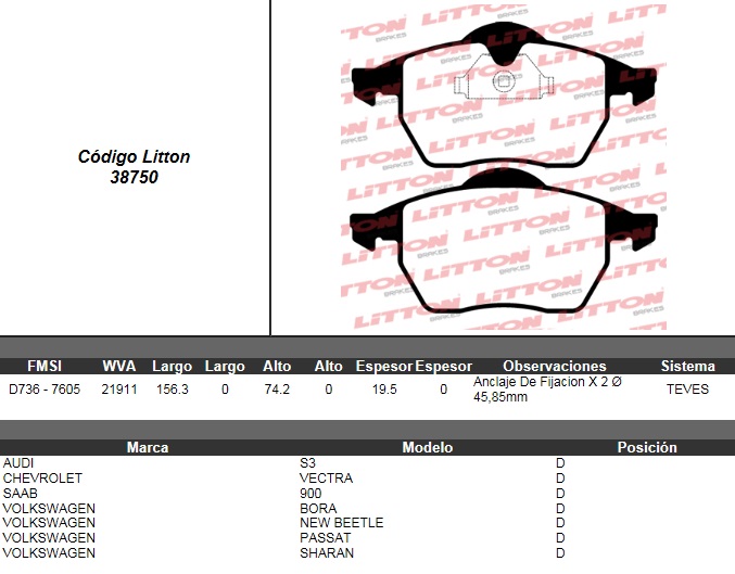 PASTILLA DE FRENO VW. PASSAT 2.8 VR6 93>96- PASSAT 1.8 20V/ TURBO 2.0 20V 97> DEL. ULT. (0378) (PD/384) |