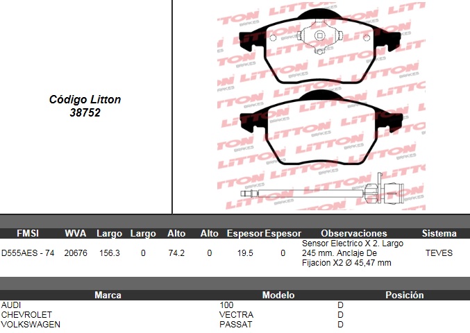 PASTILLA DE FRENO VW. PASSAT 2.8 VR6 93>96- PASSAT 1.8 20V TURBO/ 2.0 20V 97> / AUDI A4 1.8- A6 1.8 94> DEL. C/SENSOR ULT. (0550) (PD/384-A) |