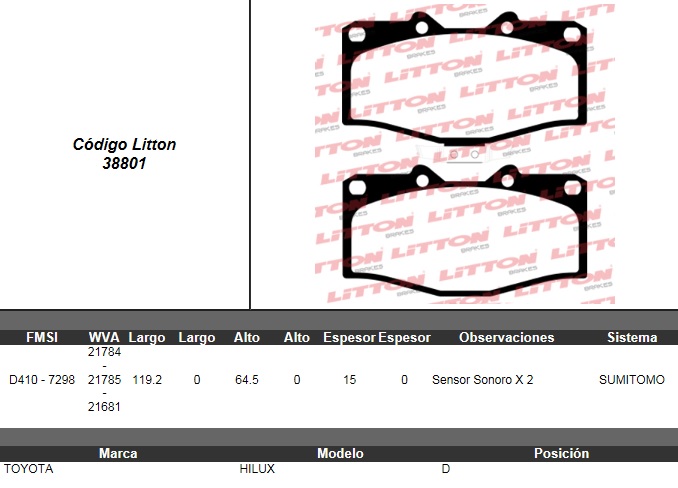 PASTILLA DE FRENO TOYOTA HILUX P.UP 4WD 2.4D/2.4 84/ DEL. ULT. (0217B) |