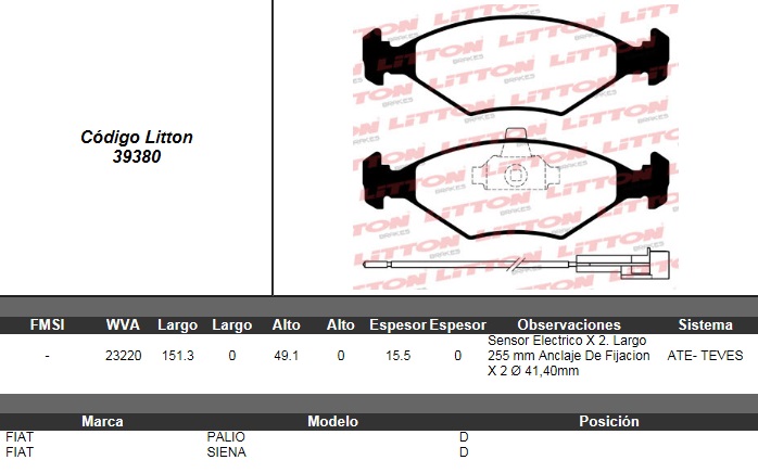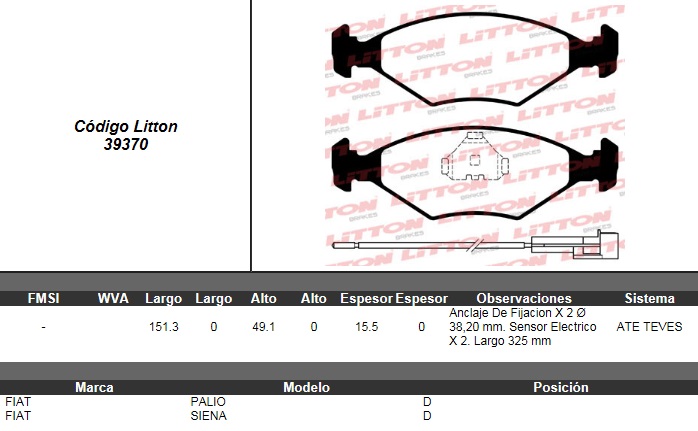 PASTILLA DE FRENO FIAT PALIO- SIENA ANCLA GRANDE C/SENSOR DEL. ULT. (0645) |