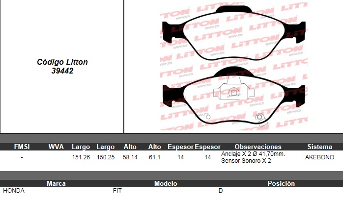 PASTILLA DE FRENO HONDA FIT (ANCLAJE FIJACION X2) NA (0805) |