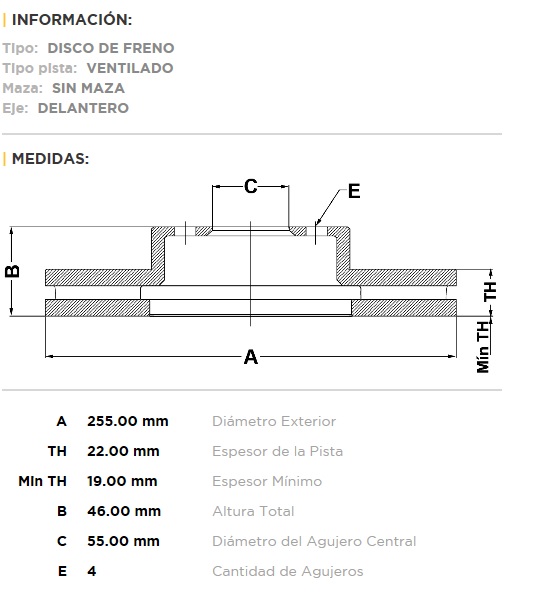 DISCO DE FRENO TOYOTA YARIS 1.5 16V 07/ (255 DIAM.) D-V |