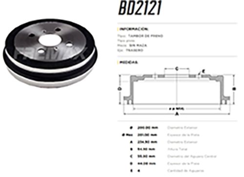 CAMPANA DE FRENO TOYOTA ETIOS 1.5 8V 13/ 200 T-C |
