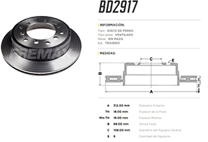 DISCO DE FRENO TOYOTA SW4 2.8 16/ 312 T-V |