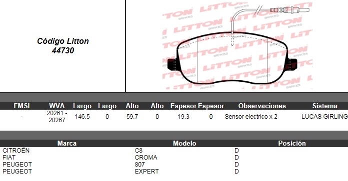 PASTILLA DE FRENO CITROEN C8 2.0/2.2- EXPERT HDI DEL. ULT. (0789) (PD/1443-A) |