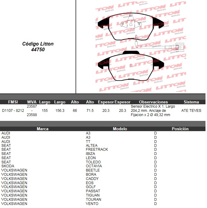 PASTILLA DE FRENO VW. BORA 2.0 8V- GOLF GTI- BORA 1.6I/1.9 TDI/2.0 TDI- PASSAT 1.6I/1.9 TDI/2.0 TDI - PASSAT 2.0T/ 3.6L 06/09- BEETLE- VENTO- TIGUAN 09> / AUDI A3 1.6I/1.6 FSI/1.8 TFSI/1.9TDI/2.0 TDI- |