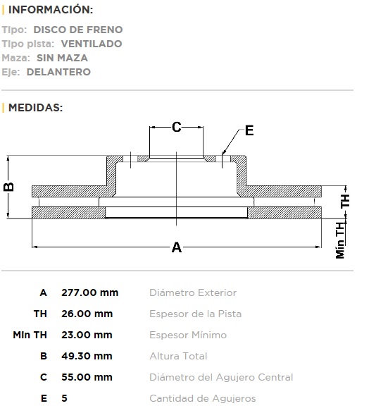 DISCO DE FRENO TOYOTA COROLLA 2.0 DYNAMIC-1.8 HYBRID 20/ D-V-282-46-55-5 |