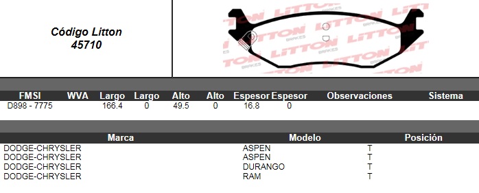 PASTILLA DE FRENO CHRYSLER RAM 1505 02>- RAM 1506 03>04- RAM 2505 04>- DURANGO 04>06 DEL. ULT. (1047) (PD/584) |