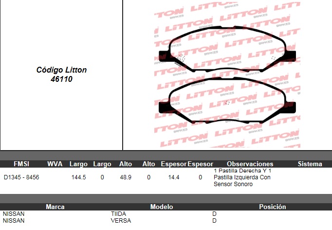 PASTILLA DE FRENO NISSAN TIIDA 08/DEL.NA (0441) |