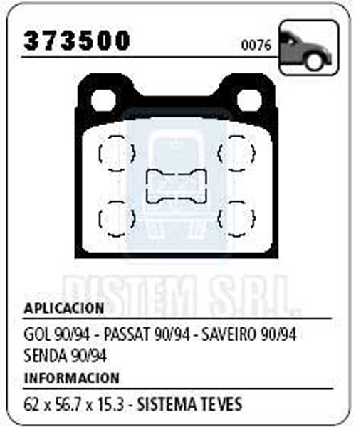 PASTILLA DE FRENO VW. GOL 1.6-SAVEIRO NA (0076) |