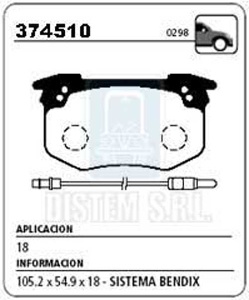 PASTILLA DE FRENO RENAULT 18 BENDIX NA (0298) |