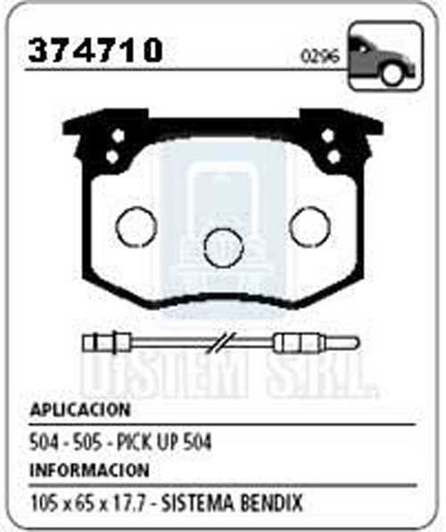 PASTILLA DE FRENO PEUGEOT 504-505 INTERC.C/374720 NA (0296) |
