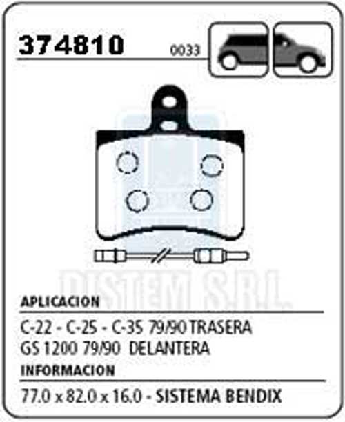 PASTILLA DE FRENO CITROEN GS NA (0033) |