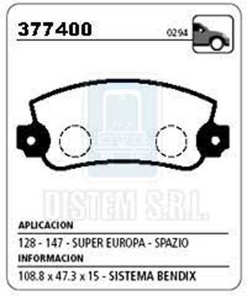 PASTILLA DE FRENO FIAT 147 SPAZIO-EUROPA-FIORINO NA (0294) |