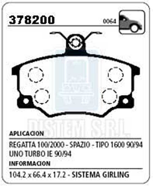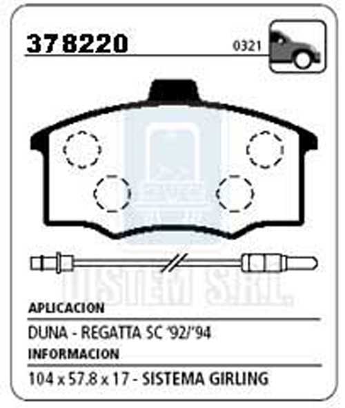 PASTILLA DE FRENO FIAT REGATTA SC 94-VIVACE C/SENSOR NA (0321) |