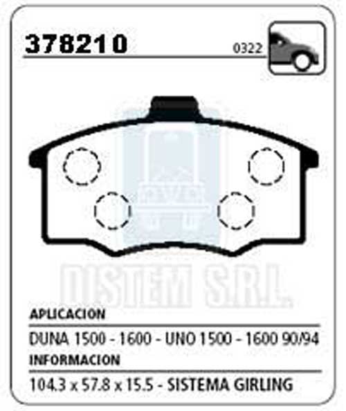 PASTILLA DE FRENO FIAT DUNA-UNO-CHEVROLET MONZA NA (0322) |