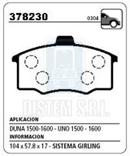 PASTILLA DE FRENO FIAT DUNA-UNO BRASIL.19MM(GRUESA) NA (0304) |