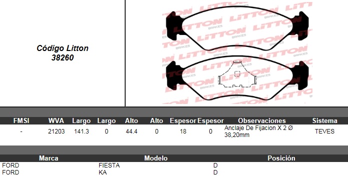 PASTILLA DE FRENO FORD FIESTA- KA 93/95 DEL. (TEVES) ULT. (0252) |