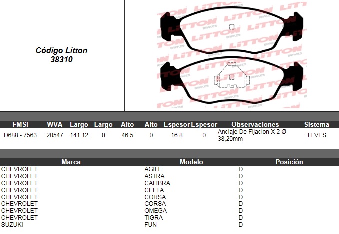 PASTILLA DE FRENO CHEVROLET CELTA 1.0- 1.4 00>11/09- CORSA 1.0- 1.6 94>01- CORSA 1.4 94>99- CORSA PICK UP 1.6 95>- AGILE LTZ FLEX 1.4 09>11/09 DEL. ULT. (0178) (PD/42) |