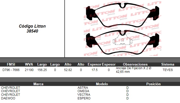 PASTILLA DE FRENO CHEVROLET ASTRA 2.0-VECTRA-DAEWOO NA (0180) |