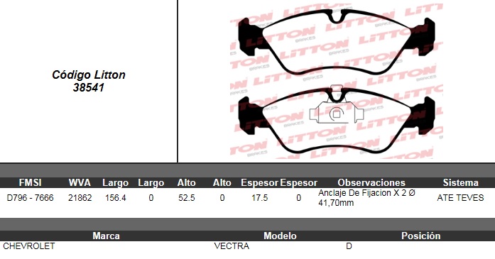 PASTILLA DE FRENO CHEVROLET ASTRA 2.0 95>- ASTRA SW 2.0 95>96- VECTRA 2.0 GL/GLS- VECTRA 2.2 CD 16V GL/GLS/GLS 16V 96> DEL. ULT. (0180B) (PD/52) |