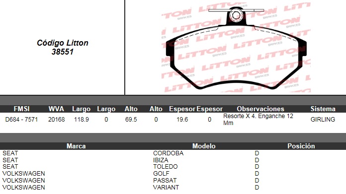 PASTILLA DE FRENO VW. GOLF 1.8/2.0 GTI- PASSAT 1.8/2.0 98> / SEAT CORDOBA 1.8 GTI 16V/2.0 GTI- IBIZA 1.8 GTI 16V/2.0 GTI 16V- TOLEDO 1.8I 16V GT/2.0 16V 91>99 DEL./VENT. DEL. ULT. (0356) (PD/337) |