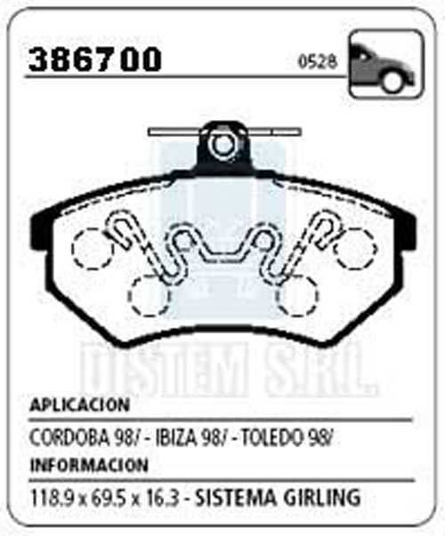 PASTILLA DE FRENO SEAT CORDOBA-IBIZA-C/RESORTE 96 NA (0528) |