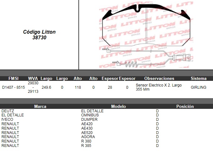 PASTILLA DE FRENO DEUTZ / EL DETALLE 0A-105 97> / IVECO DUMPER / RENAULT AE420- AE 430- AE520- AGORA- R 380.17- R380.19- 385 TL 93>95 / MAGNUM- PREMIUM 00> DEL./TRAS. ULT. (0522B) (PD/125) |