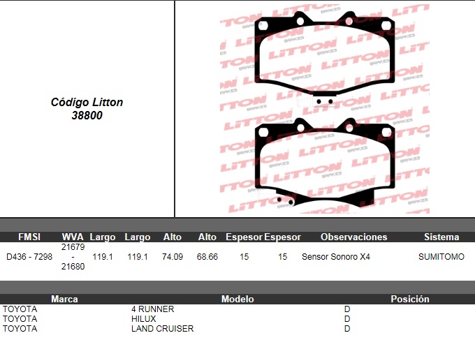 PASTILLA DE FRENO TOYOTA. LAND CRUISER P.UP 79/90- 4 RUNNER 79/90- DEL.ULT (0233) |