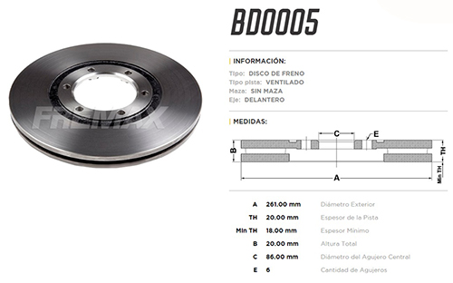 DISCO DE FRENO KIA BESTA-MAZDA B-E 2.0-2.2 256-D-V |