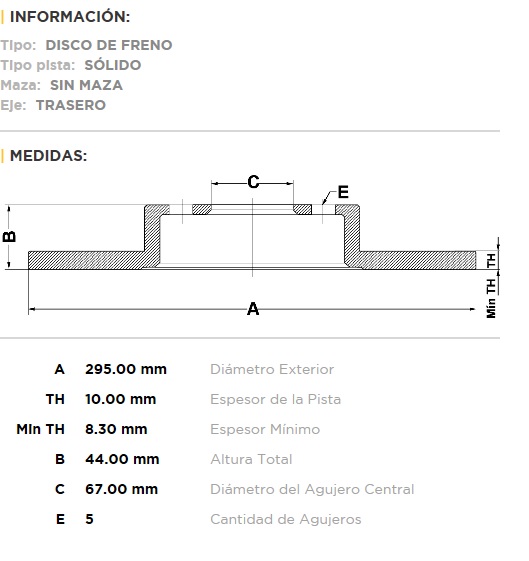 DISCO DE FRENO MERCEDES BENZ CLASE A-B-CLA-GLA 160- 180- 200- 220- 250 - (295 DIAM.) T-S |