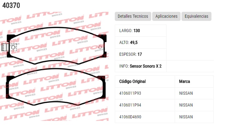 PASTILLA DE FRENO NISSAN PATHFINDER 90>97- PICK UP D21 95>97- PICK UP D21 2.4L 94> DEL. ULT. (0163) (PD/428) |