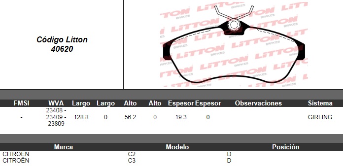 PASTILLA DE FRENO CITROEN C3 1.4 HDI 16V-C2 1.6I VTR NA (0800) |
