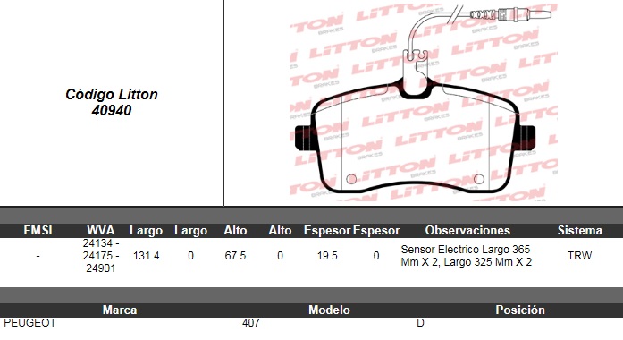 PASTILLA DE FRENO PEUGEOT 407 1.6 16V HDI 04>- 407 1.8 16V 04>- 407 2.0 HDI 04>- 407 2.0 16V HDI 04> DEL. C/SENSOR ULT. (0836) (PD/1477-E)
