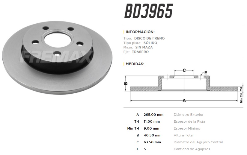 DISCO DE FRENO FORD FOCUS 2.0 11/ T-S-271-41-63.5-5 |