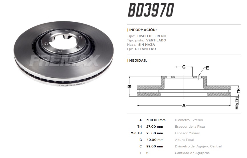 DISCO DE FRENO CHEVROLET S10-TRAILBLAZER-ISUZU D MAX 11/ D-300-40-88-6 |