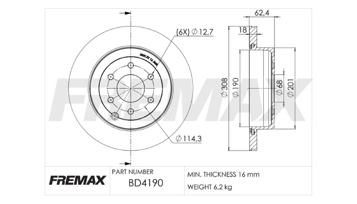DISCO DE FRENO NISSAN FRONTIER 2.3 TD 23/ (432065XA0A) T-V 308-18-62-68-16-6 |