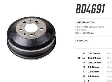 CAMPANA DE FRENO PEUGEOT BOXER-FIAT DUCATTO 2.8 98/09 T-254-99-72-65-5 |