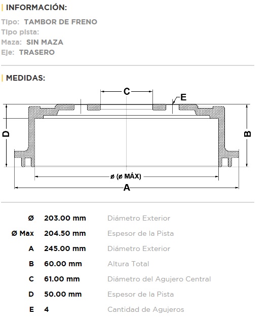 CAMPANA DE FRENO NISSAN KICKS 1.6 16V 16/ (203 DIAM.) T |