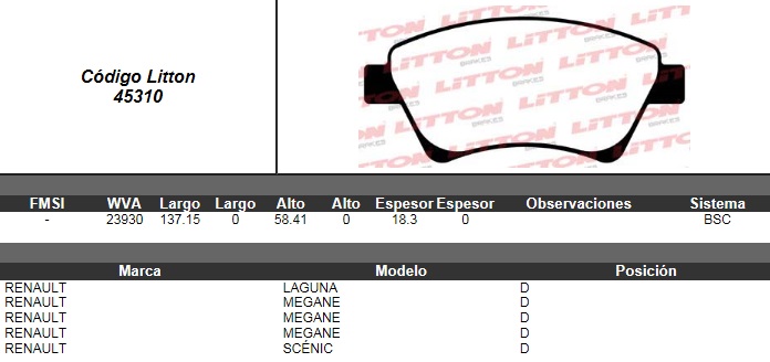 PASTILLA DE FRENO RENAULT MEGANE II 1.5 DCI 11-02>- MEGANE II 1.6 09-03>- MEGANE II 1.6 16V 11-02>- MEGANE II 1.9 DCI 11-02>- MEGANE II 2.0 09-03>- SCENIC II 05/08 DEL. ULT. (0870) (PD/601)