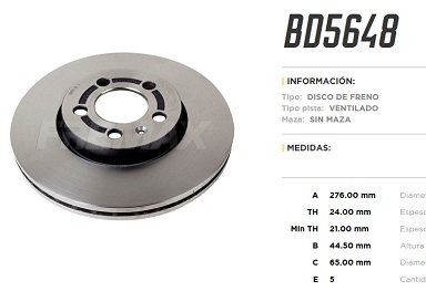 DISCO DE FRENO VW.T-CROSS-NIVUS-POLO-VIRTUS 1.0-1.4-1.6 MSI 19/ D-V-276-44-65-5 (PRECIO X UNIDAD) |