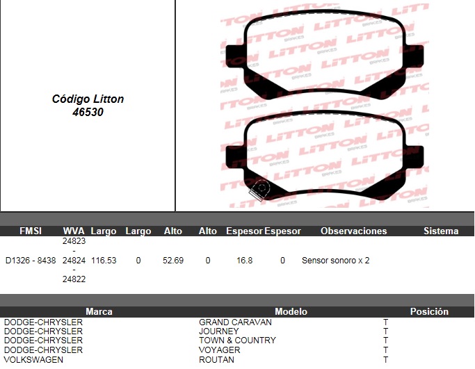PASTILLA DE FRENO CHRYSLER DODGE JOURNEY 2.7 V6 08>- GRAND VOYAGER 08>09- TOWN & COUNTRY 08>09 TRAS. ULT. (0956) (PD/300) |